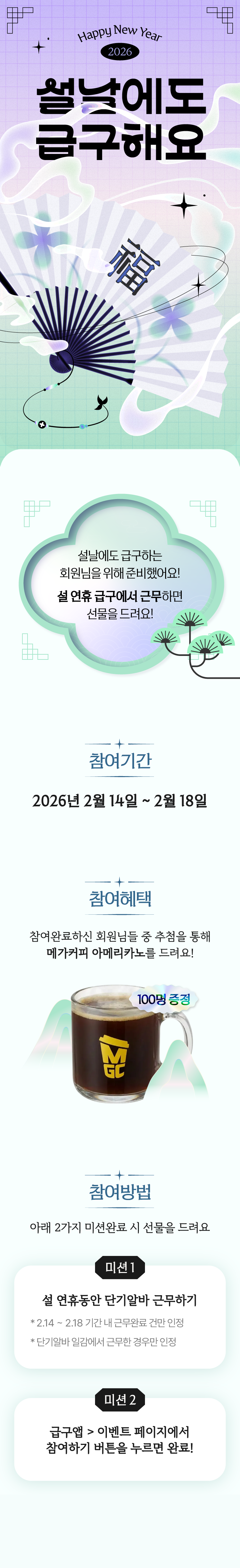 Feb 9, 2026 이벤트 [EVENT] 설날에도 급구해요 Written by: 급구 하루만 알바가 필요할 때, 급구! 믿을 수 있는 내 주변 알바를 급구에서 쉽고, 빠르게 구해보세요 :) Member discussion: