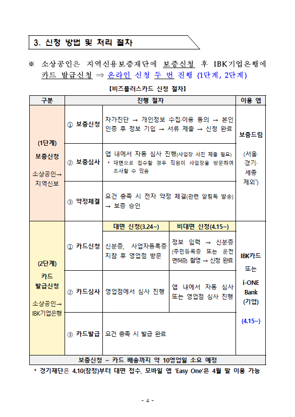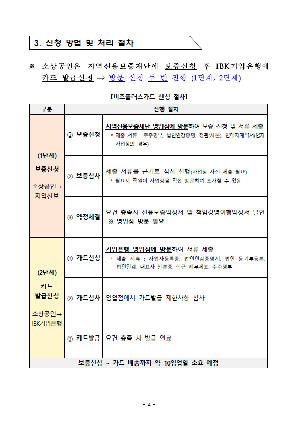 - 지원 내용 : 지역신용보증재단이 한도를 보증하는 신용카드 발급