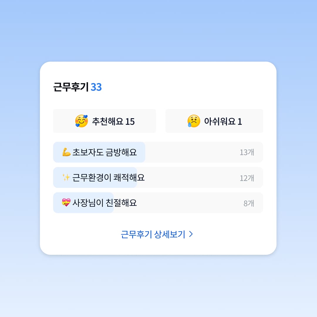 지원자는 처음 보는 매장에 지원하는 경우일 수 있는데 여러 가지 정보를 제공해 주어 불안을 해소시켜 주니 좋았어요. 정보의 격차를 줄여주는 느낌이랄까요?