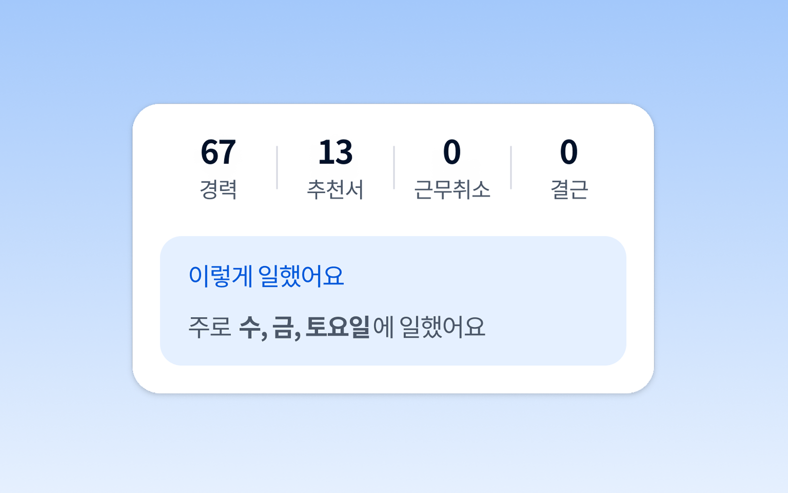 급하게 인력이 필요한 상황이 자주 발생하는 매장을 운영하고 계시거나, 고정 인건비 부담을 줄이고 필요한 만큼만 인력을 운영하고 싶으신 경우에 특히 유용해요.